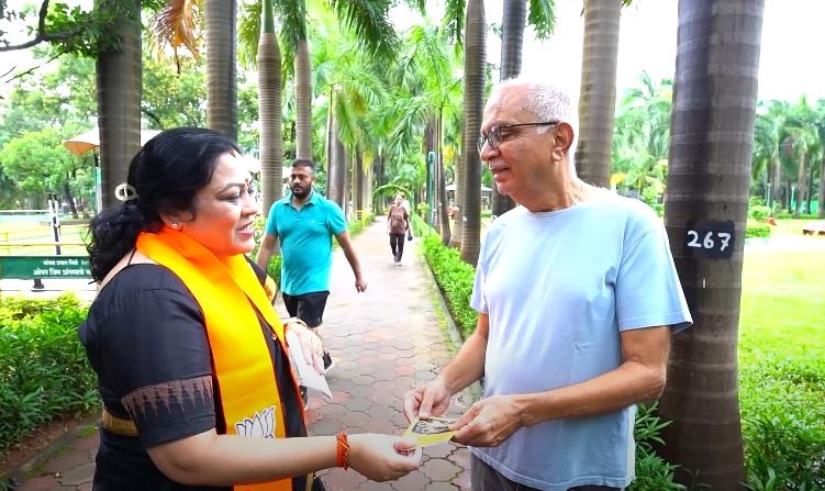 BJP’s Madhuri Kale marked CM Fadnavis’ birthday by distributing Ram Raksha Stotram and holding prayers in Vashi’s Rajiv Gandhi Garden.
