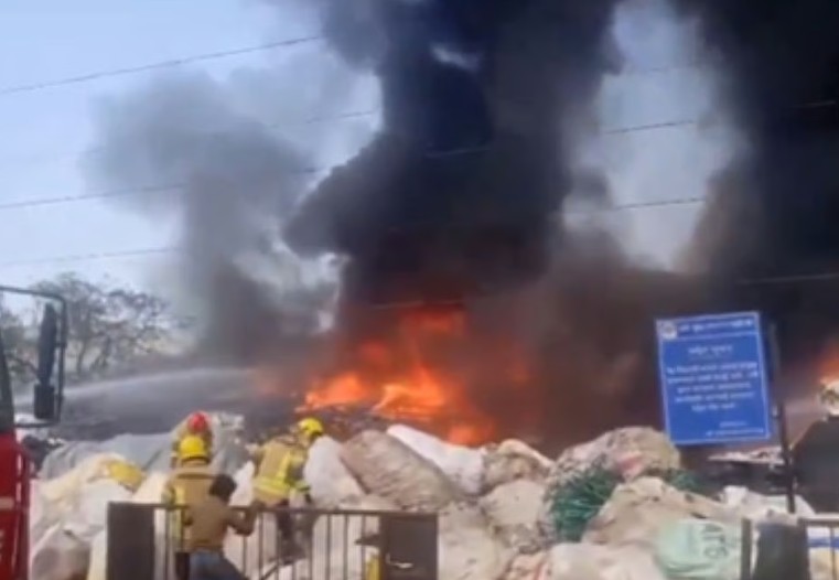 A massive fire broke out on Thursday afternoon at a scrap warehouse in the Digha area of Airoli, Navi Mumbai, sending thick plumes of smoke into the sky and triggering panic among nearby residents. The blaze was reported around 2:30 PM, prompting an immediate response from the Navi Mumbai Fire Brigade.
