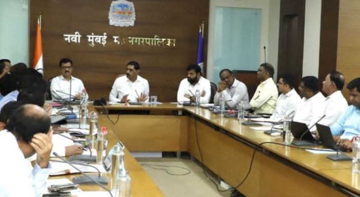 The Chief Minister’s 100-Day Action Plan, which includes sanitation initiatives, is reviewed by NMMC Commissioner Dr. Kailas Shinde.