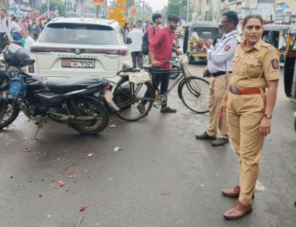 The crackdown was conducted under the leadership of Deputy Commissioner of Police (Traffic) Tirupati Kakade, with the aim of enhancing road safety and enforcing traffic norms in high-traffic zones.